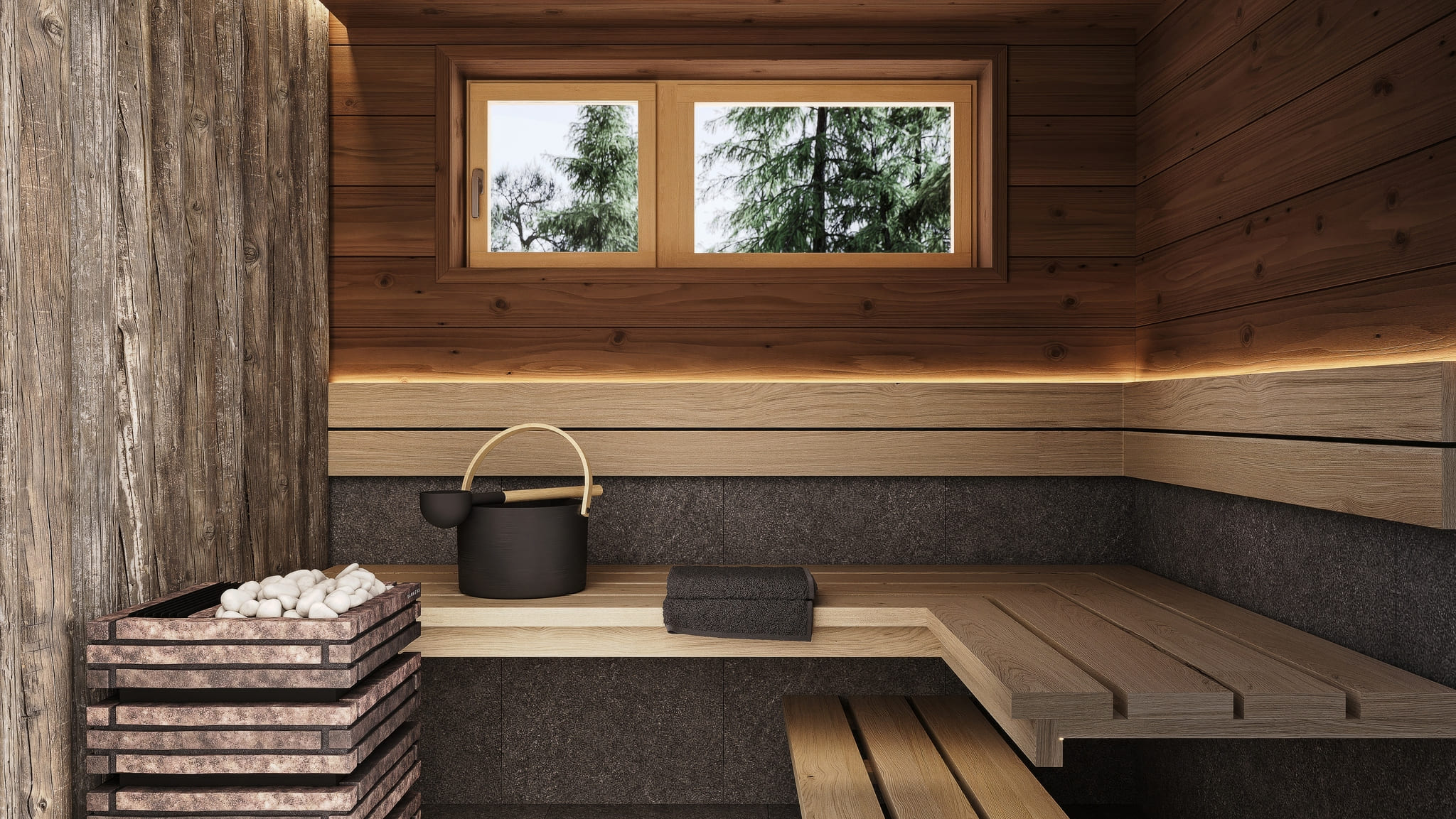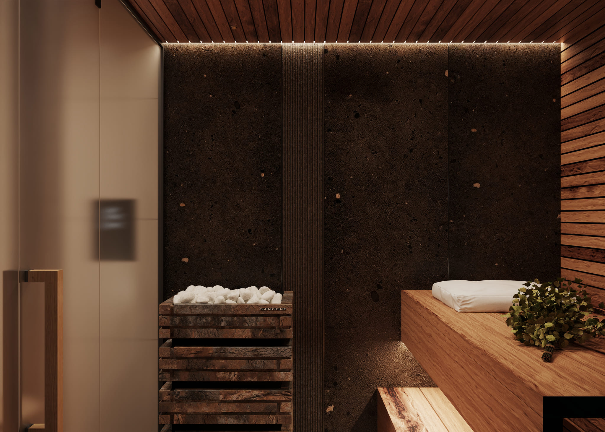 Типовые визуализации парных помещений с интеграцией оборудования в интерьере.